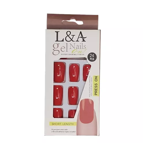 Unhas L&A Short Length Gel Nails Vermelho (24 pçs)